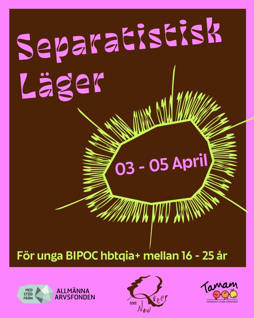 Tamams nya projekt Queer and Now bjuder in till ett separatistiskt läger fylld med community, workshops och aktiviteter. Vi står för alla kostnader, resa, mat och material. Under lägret bjuds det på vegetarisk mat och fika.